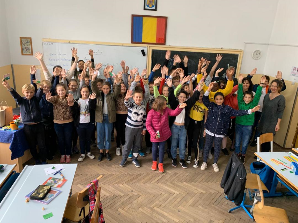 Spre bucuria şi onoarea noastră, elevii au ales Şcoala Gimnazială “ Avram Iancu” unde, în data de 29.10 2019, au participat la o activitate interactivă alături de elevi din clasa a V-a A, îndrumaţi de doamna profesoară Florea Monica, cu sprijinul direcţiunii Şcolii Gimnaziale şi al Primăriei Municipiului Târnăveni. În cadrul acestei întâlniri, tinerii au reuşit să se cunoască, prin intermediul unor activităţi interactive, în care au fost implicaţi atât elevii români cât şi cei francezi: au “ţesut” “panza prieteniei” din panglici colorate, au cântat împreună, au realizat puzzeluri şi chiar au “pus în scenă” un scurt moment de teatru de improvizaţie împreună. Prin activitatea realizată s-au atins atât obiective lingvistice, cât şi comunicative şi socio-culturale: utilizarea în exprimare a unor verbe învăţate, utilizarea unor expresii cunoscute pentru a dialoga, a ineracţiona, a face parte dintr-un grup, stabilind relaţii de prietenie.